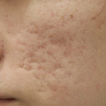 花房式ニキビ跡治療 (サブシジョン+CO2)+ヒアルロン酸を行ってから1.5ヶ月後の症例です。