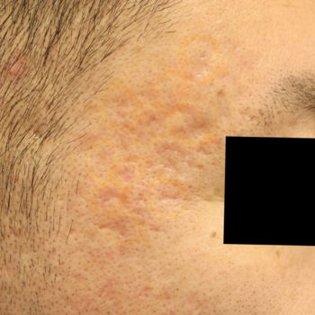 今回はこめかみのニキビ跡にお悩みの40代男性の症例をご紹介いたします。