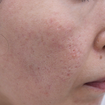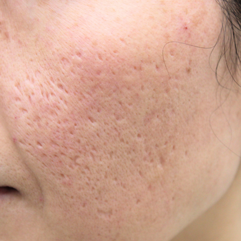 花房式ニキビ跡治療 (サブシジョン+CO2)個数を行ってから1.5ヶ月後の症例です。