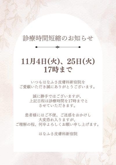 いつもはなふさ皮膚科新宿院をご愛顧いただき、誠にありがとうございます。