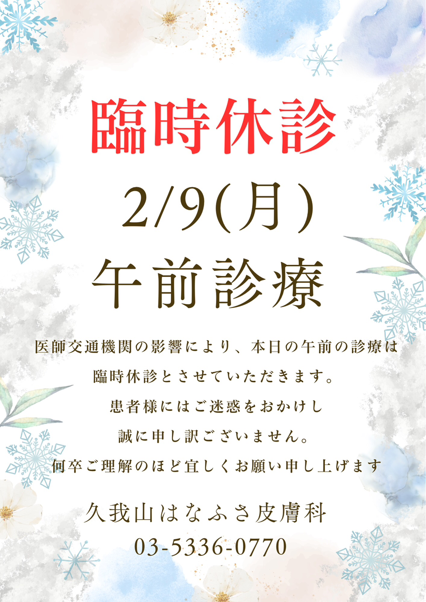 いつもはなふさ皮膚科久我山院をご愛顧いただき、誠にありがとうございます。