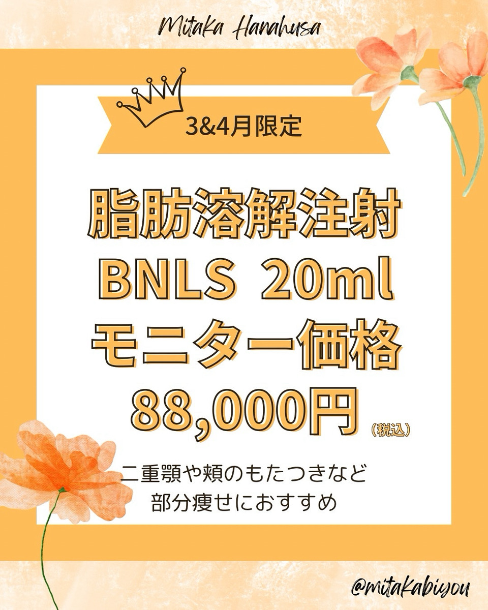 4月のおすすめメニューとして、モニター限定で BNLSを \特 別 価 格/ でご案内いたします!!